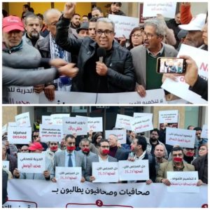 نفذ مئات الصحافيين والصحافيات، مساء يومه الجمعة 28/11/2025 وقفة احتجاجية، أمام مقر وزارة الشباب والثقافة والتواصل بالرباط، حاملين شعارات من بينها "حل المجلس الوطني للصحافة" و " السحب الفوري لمشروع القانون رقم 25.26" و "وقف التضييق على الصحافة المستقلة"، وقد جائت هذه الوقفة استجابة لنداء لجنة "بيان من أجل حل المجلس الوطني للصحافة".