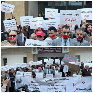 مئات الصحافيين يحتجون ب”أفواه موصدة” بالرباط ويطالبون بحل المجلس الوطني للصحافة