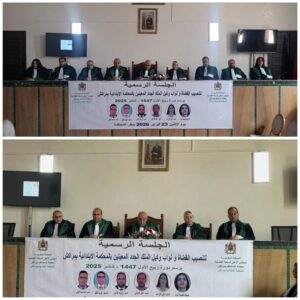وشهد هذا الحفل حضور الرئيس الأول لمحكمة الاستئناف بمراكش، مرفوقاً بالوكيل العام للملك لديها، في دلالة واضحة على أهمية المناسبة ومكانتها داخل المنظومة القضائية على مستوى الدائرة الاستئنافية.