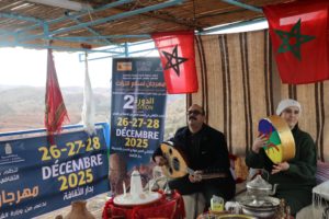 وتخللت هذه الجلسة فقرات موسيقية من تراث "إزران" المحلي الأصيل، أبدع في تقديمها كل من الفنانة نجاة الحسيمة والفنان ميميت أولاد الشيخ موحند، حيث سافرت أنغامهم بالحضور في رحلة وجدانية تعكس الهوية الريفية العريقة.